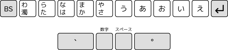 - 「、」は左親指で、「。」は右親指で打ちます。