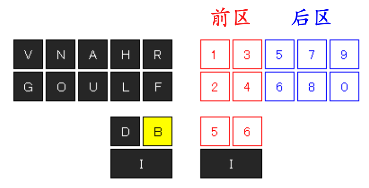 双数模式是在单数模式的基础上,将数字分为前后两区,并分别补全十个阿拉伯数字,从而形成两套并行不悖的数字打法。如下图所示: